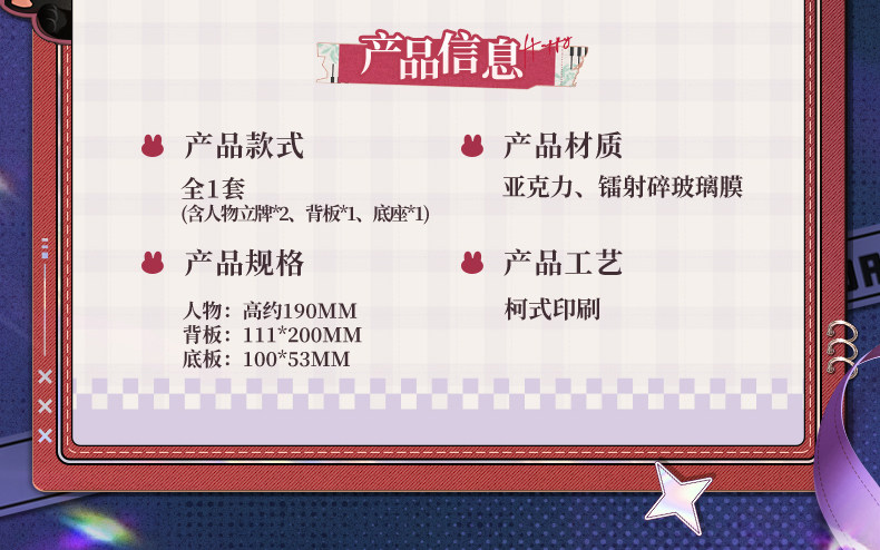 - Standee bahan akrilik, ukuran 190mm, background 111x200mm, base 100x53mm.