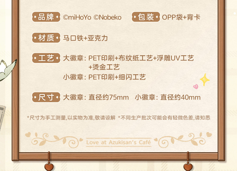 [LIMITED] Tears of Themis “Love at Azukisan’s Cafe” Series: Tinplate Badge Set