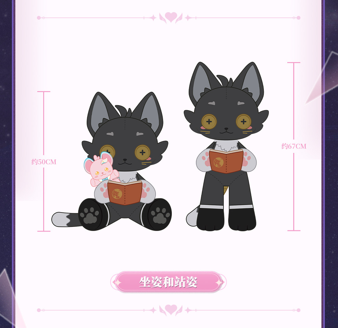• Ukuran: Black Cat Tinggi 67cm (Berdiri), Tinggi 50cm (Duduk), Pink cat 19,5cm, Book 11x8cm, Bonus Shikishi 192x108mm